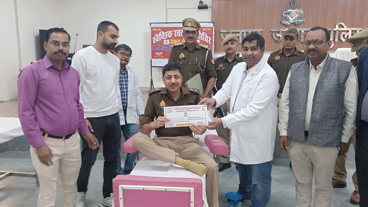 उन्नाव। उमाशंकर दीक्षित संयुक्त चिकित्सालय उन्नाव के तत्वाधान में बृहस्पतिवार को पुलिस लाइन उन्नाव में स्वैच्छिक रक्तदान शिविर का आयोजन किया गया। इस अवसर पर पुलिस अधीक्षक उन्नाव जय प्रकाश सिंह सहित अन्य पुलिस अधिकारियों/ कर्मचारियों ने रक्तदान किया। इस रक्तदान शिविर का उद्देश्य रक्तदान के महत्व को बढ़ावा देना और रक्त की कमी को पूरा करना था। पुलिस अधीक्षक उन्नाव ने कहा कि रक्तदान महादान है और इससे कई जिंदगियों को बचाया जा सकता है। उन्होंने सभी से रक्तदान करने की अपील की। इस अवसर पर पुलिस अधीक्षक उन्नाव ने कहा कि पुलिस विभाग हमेशा समाज सेवा के लिए तत्पर है और रक्तदान शिविर इसका एक उदाहरण है। उन्होंने कहा कि रक्तदान करने से न केवल दूसरों की जिंदगी बचाई जा सकती है, बल्कि इससे हमारे शरीर को भी कई लाभ होते हैं। इस रक्तदान शिविर में बड़ी संख्या में पुलिस अधिकारियों और कर्मचारियों ने भाग लिया और रक्तदान किया। इस अवसर पर अब्दुल रशीद प्रतिसार निरीक्षक रिजर्व पुलिस लाइन उन्नाव उपस्थित रहे।